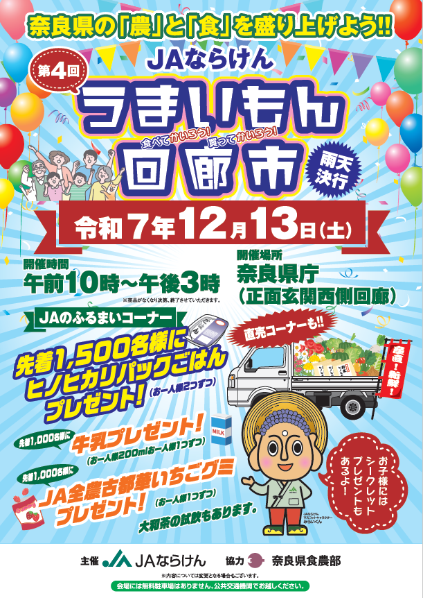 トップページ > しごと・産業 > 農林水産業 > 農林水産物ブランド化 > 食と農のイベント情報 > 令和7年度食と農のイベント情報 > JAならけんうまいもん回廊市