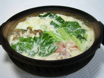 大和まなの上品な味わいに、牛乳と白みそでこくをつけて仕上げました。ここでは鍋仕立てにしていますが、煮物としても利用できます。
