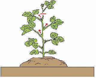 本葉5枚ほどで先端を摘心するとわき芽が伸びてきて横に広がります。