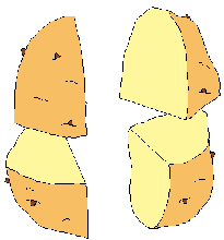 タネイモは小さいものでは2つに、大きなものでは4つに切ります(芽は複数ついていてかまいません)。