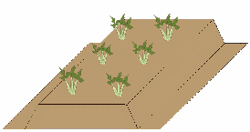 元肥のうち苦土石灰や堆肥は植え付け1ヶ月前に20cmの深さまで耕して施し、植え付け14日前までには1平方mあたり有機質や堆肥を3kg、緩効性肥料200gを全面に施します。幅1.2mの畝に、株間30~40cmの2条植えにし、根づくまで十分に水やりします。