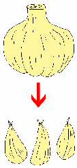 植え付けの時期は9月中旬~10月上旬で、種として使うのは、普通のニンニクのりん片です。一般的に大きいりん片を使った方が大きな球ができやすいです。植え付けの深さは、3~5cmとし、芽の出る方を上にして植えます。