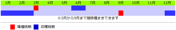 栽培期間中に長期低温にあたると花芽が出来てしまうので、10月中旬以降は種まきを避けた方が良いでしょう。