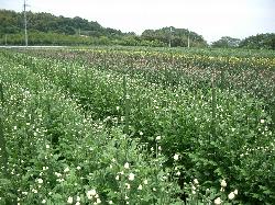 露地を主体として、一部施設を組み合わせた栽培体系が確立されており、標高50~400mという標高差を活かしながら年間を通じて200を超えるバラエティに富んだ品種が作付けされています。特に需要の多い8月旧盆に確実に供給するため、LED電球を用いた電照抑制栽培による開花調節にも産地をあげて取り組んでいます。