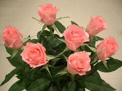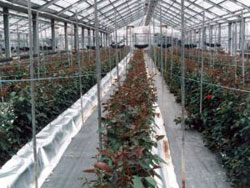 現在、バラ組合では周年生産・出荷が行われており、激しく変遷する消費者ニーズにいち早く対応するため常に新しい品種を導入し、バラエティに富んだ50品種もの美しいバラが栽培されています。また、近郊産地であることから、もともと新鮮で花持ちは良いのですが、より日持ちするバラを消費者に提供するため、湿式低温輸送(茎の切り口を水に浸けて低温条件下で出荷する方法)が行われています。