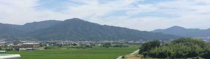 (橿原総合庁舎屋上から眺める三輪山と田園地帯)