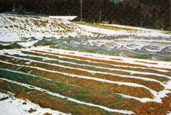 - 間引き後、不織布(ビニルは不可)で10月末から3月上旬までべたがけ被覆をする。