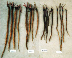 この宇陀ゴボウの栽培期間の延長をはかるため、春ゴボウの促成栽培技術としてべたかけ栽培を開発しました。また、産地で問題になっている連作障害の原因解明とその対策技術を確立しました。