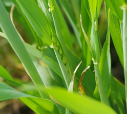 製パンにも適した強力系品種である‘はるみずき’は、奈良県の奨励品種に指定され、主な産地である平坦地域だけでなく中山間地域へも栽培が広がりつつあります。しかし、地域間の気象条件の違いや昨今の異常気象の影響により、施肥などの栽培管理の適期を判断するのが難しくなってきています。そこで、気象予測データを元にして、生育予測プログラムを作成し、地域ごとの栽培適性を評価するとともに、適切な栽培管理時期を事前に予測することで、効率的で効果の高い栽培管理を実現して小麦の生産拡大を目指します。