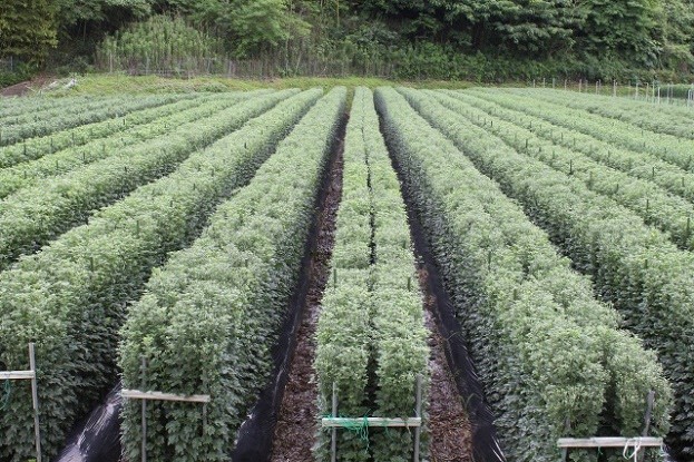 県内の8月盆用小ギク栽培圃場