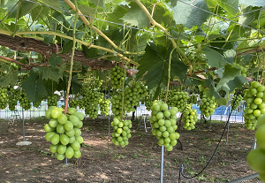 他にも日本には様々な品種があります。珍しい品種を見つけた際にはぜひご賞味ください。(写真:果樹・薬草研究センターの今年のシャインマスカットの栽培の様子)