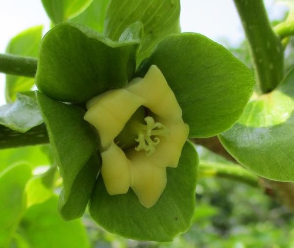 最後に、筆者の亡き祖父は今の大阪市南部で大正時代期に「柿博打」が強かったそうなのですが、どんな品種の柿でどこを見て「柿の種」の数を判断していたのかが気になります。(写真:柿の雌花 品種「富有」)