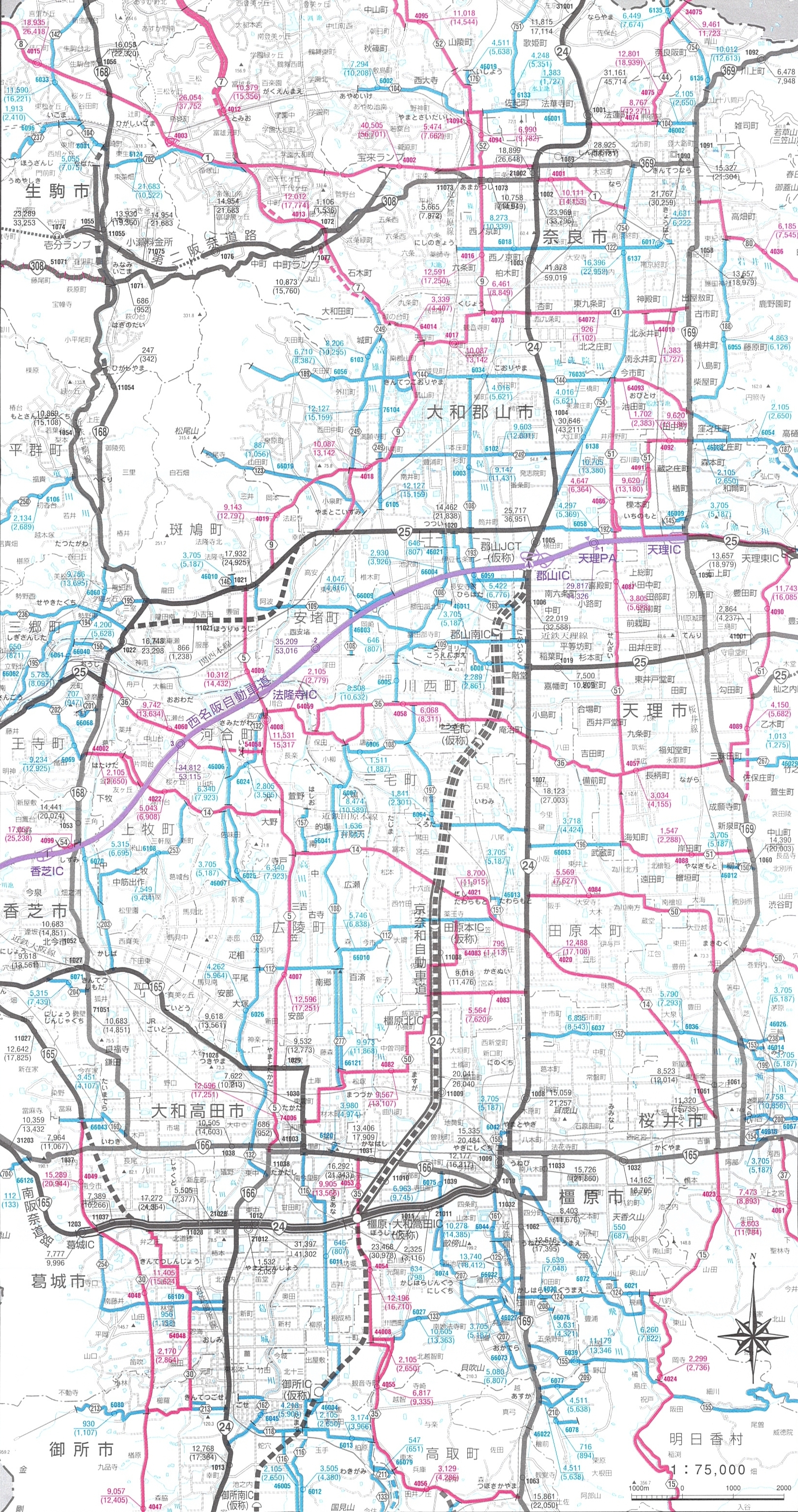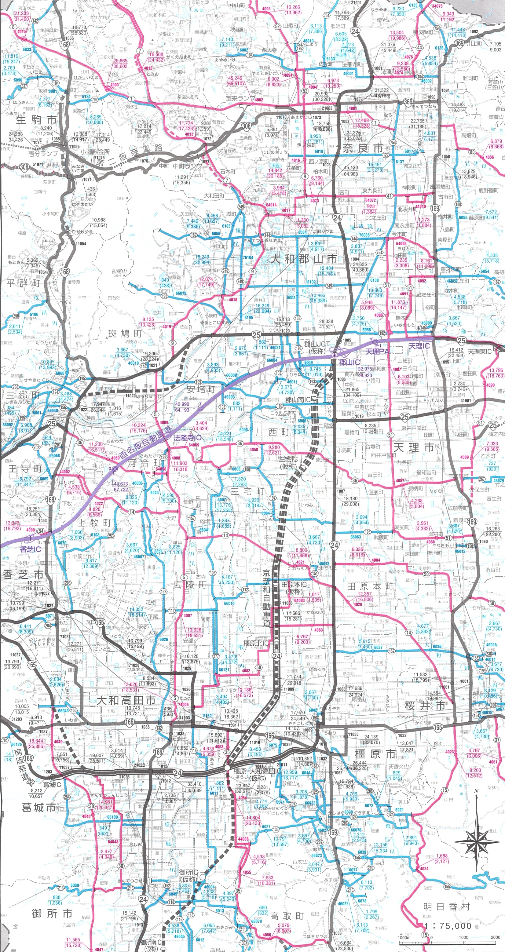 奈良県内平日24時間交通量結果については平日24時間交通量(平成17年度道路交通センサス)へ(国土交通省のページへジャンプします)
