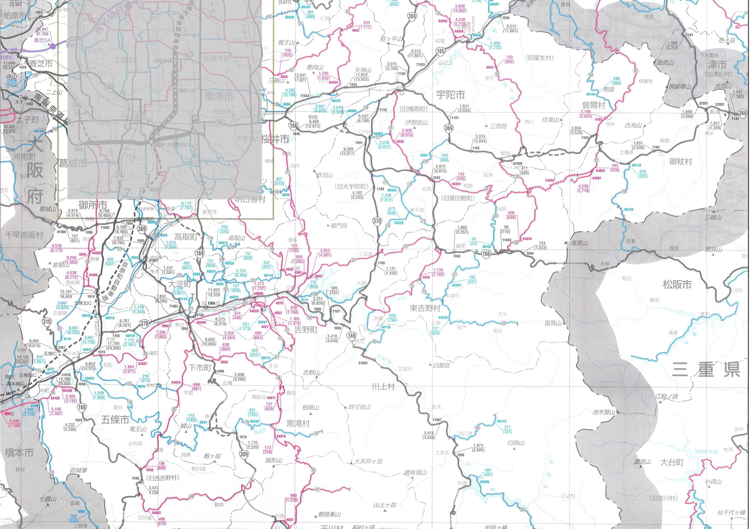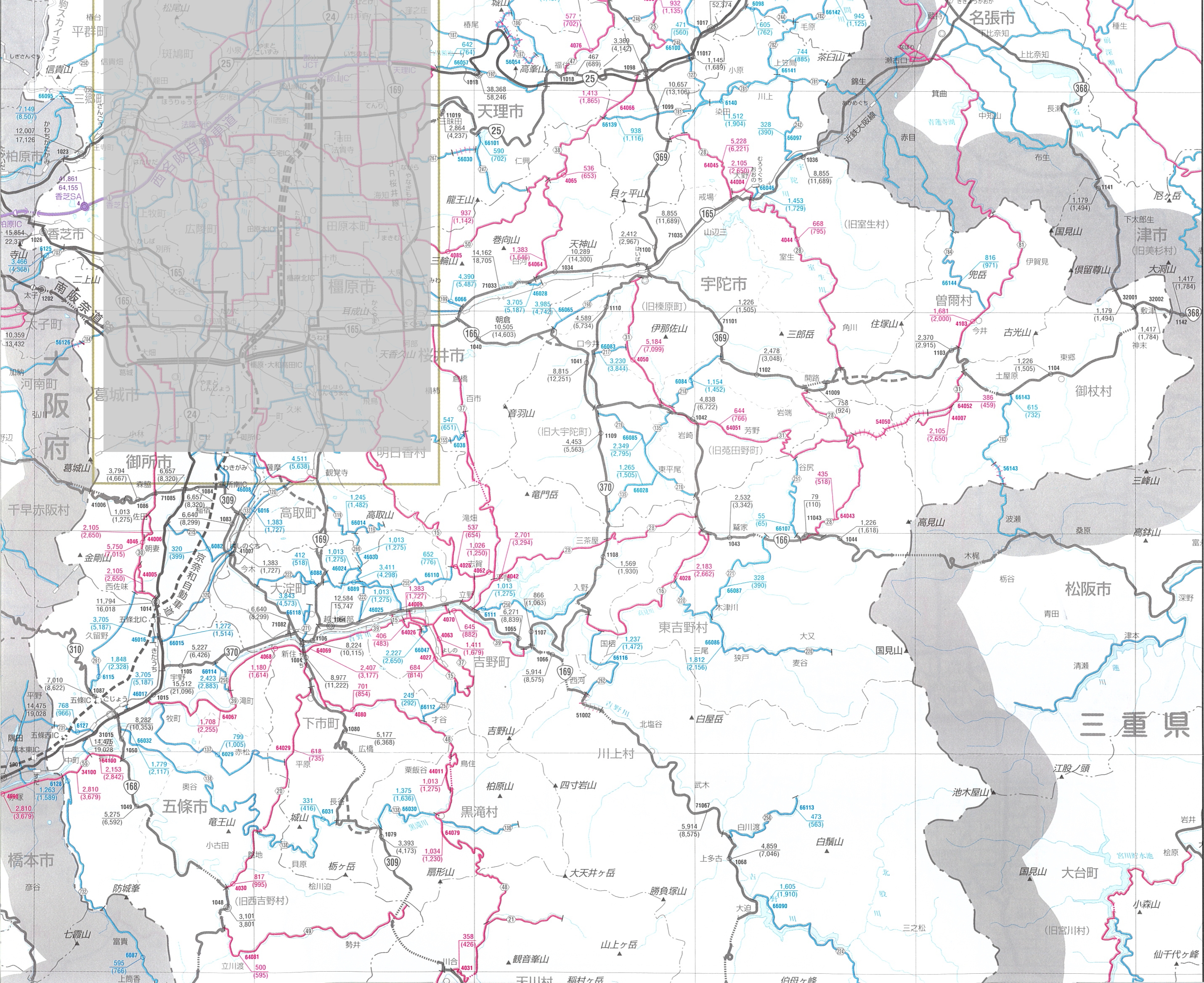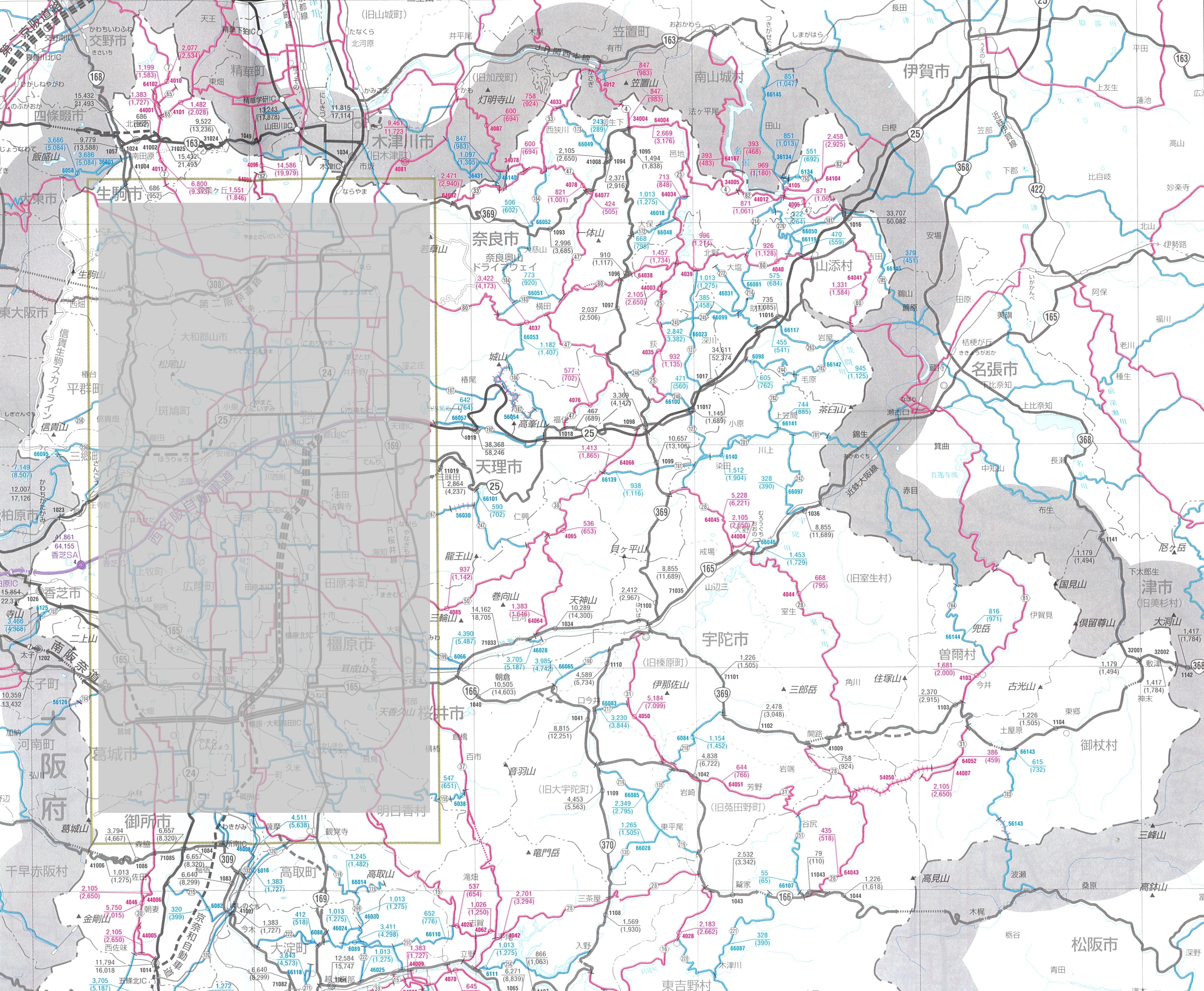 - 近畿地方の箇所別基本表、時間帯別交通量表、交通量図については道路交通レポートへ(国土交通省近畿地方整備局のページへジャンプします)