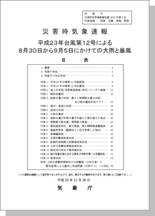 No.1-01 災害時自然現象報告書 2011年第3号 災害時気象速報 平成23年台風第12号による8月30日から9月5日にかけての大雨と暴風 |