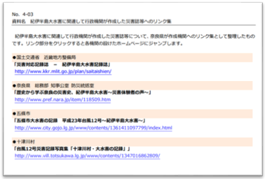 No.4-03 紀伊半島大水害に関連して行政機関が作成した災害誌等へのリンク集 |
