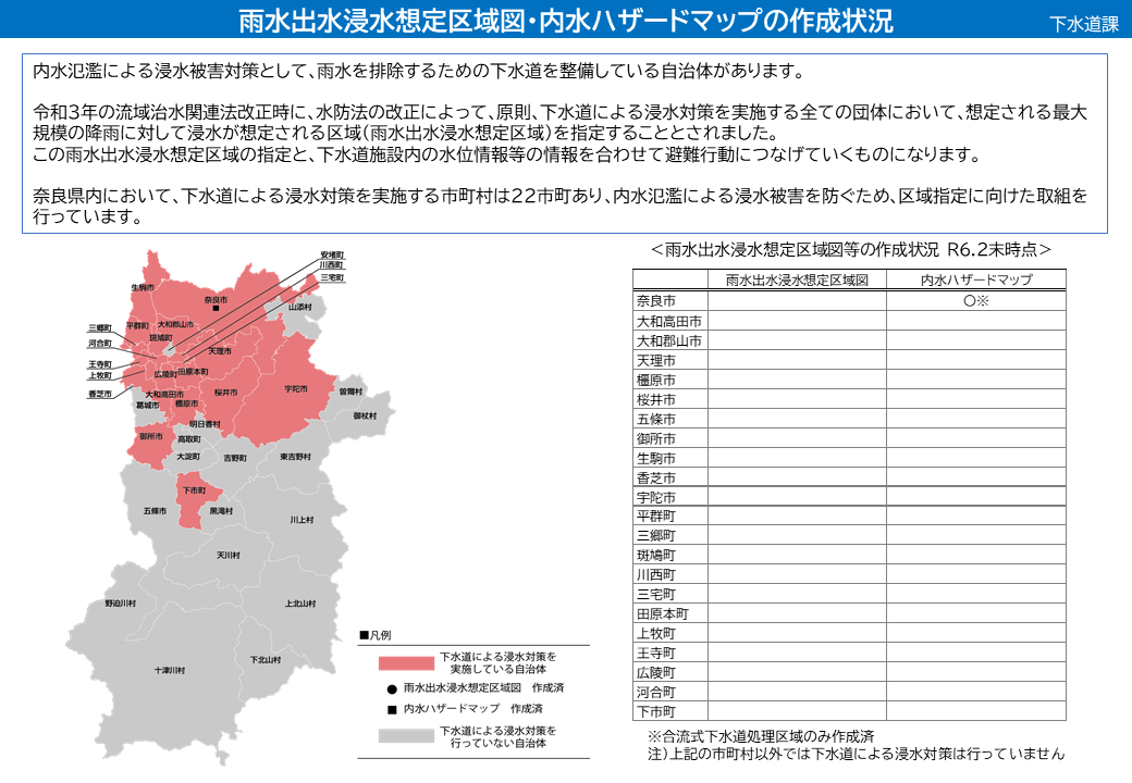 トップページ > くらし・環境 > まちづくり > 上下水道 > 下水道 > データ集 > 雨水出水浸水想定区域図・内水ハザードマップの作成状況