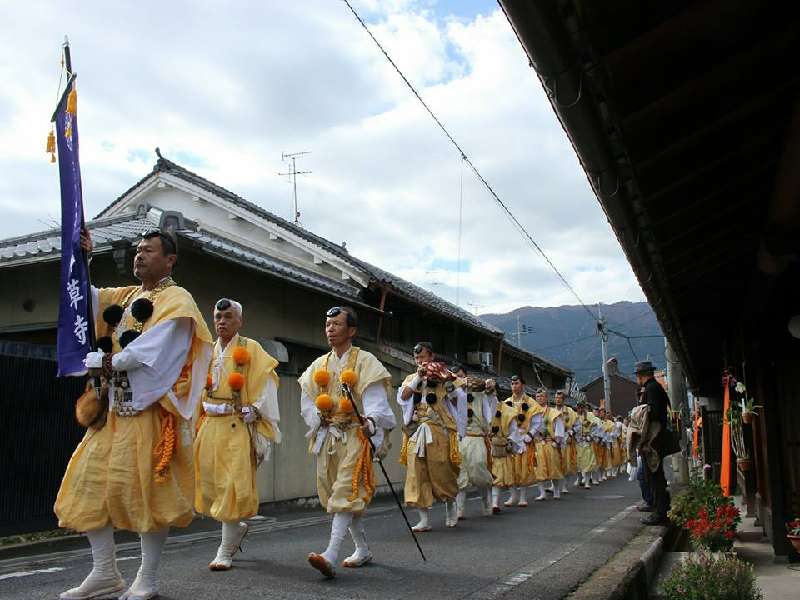 霜月祭(そうげつさい)は毎年11月に行われる御所市のお祭りで、山伏衆が法螺貝を吹きながら御所まちを練り歩く「山伏おねり」や、普段は内部をみることが出来ない古い町家がこの日だけ特別公開されます。