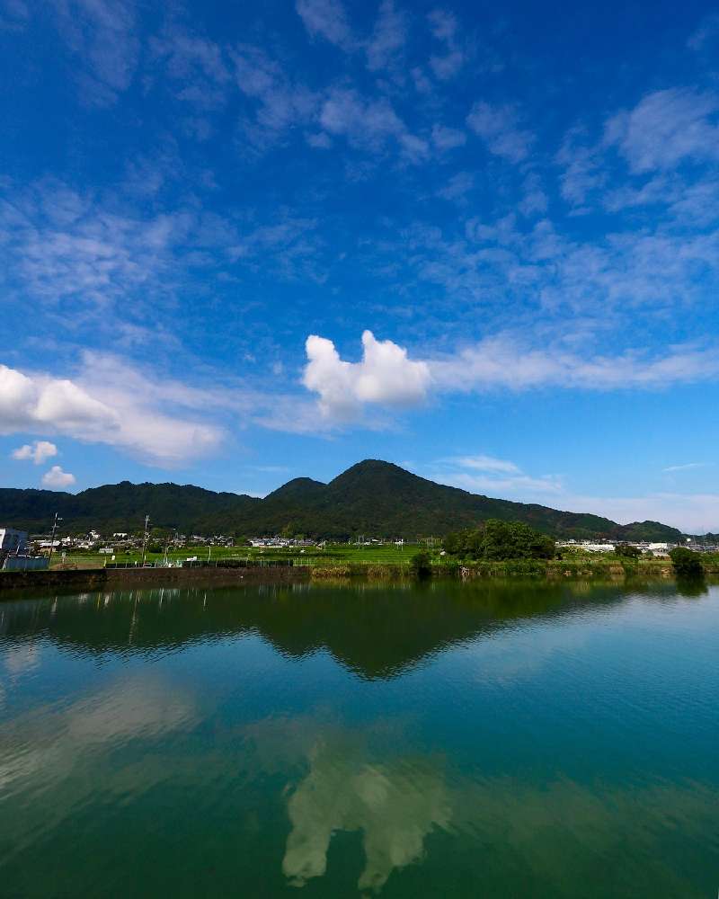 千股池に映る二上山は絵になる風景です。二上山の雄岳と雌岳の間に夕日が落ちる写真の撮影スポットでもあります