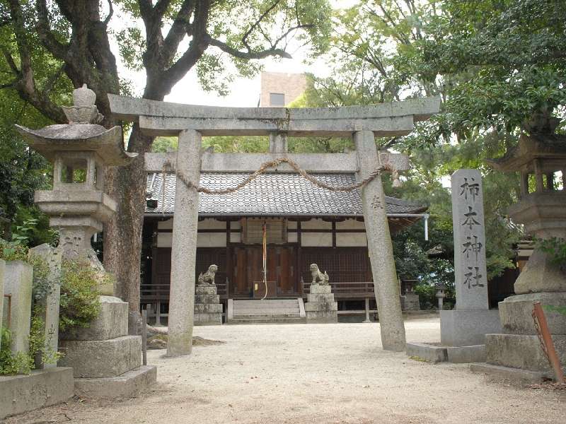 柿本人麻呂(かきのもとのひとまろ)のゆかりの神社で、その生誕地、または石見国(いわみのくに)で没した人麻呂をこの地に葬り、傍らに神社を建立したのが始まりとされています。