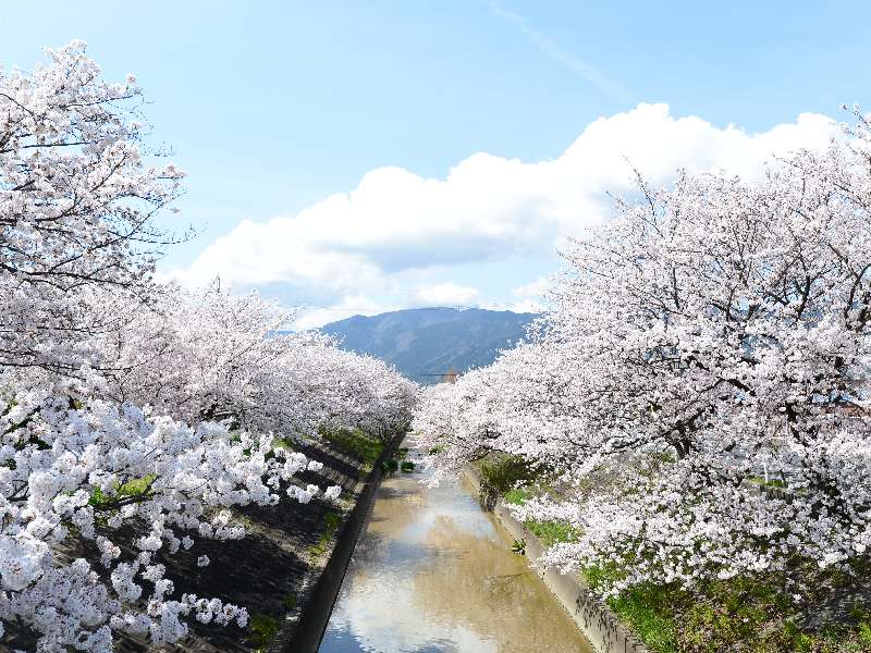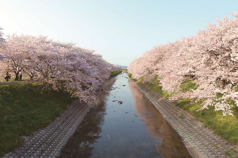 広陵町を流れる高田川沿いを彩る桜並木です。