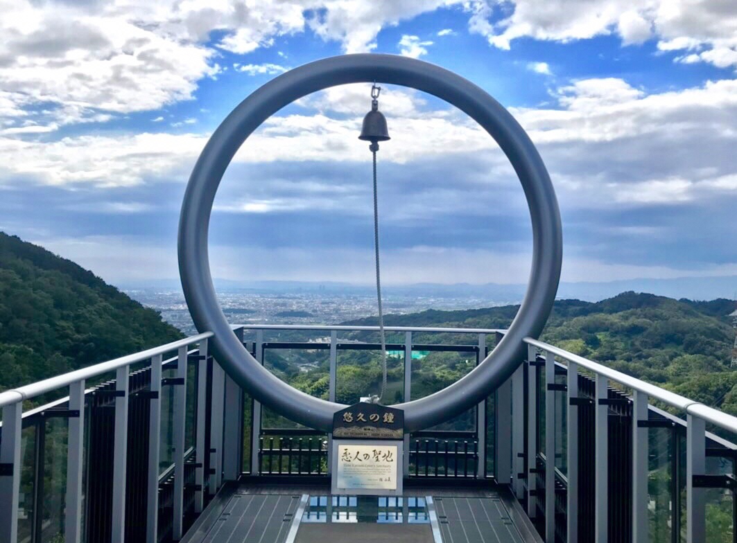 王寺町南西に位置する明神山は、奈良盆地を一望できる景観スポットで、山頂には恋人たちが永遠の愛を誓う「悠久の鐘」が登場しました。