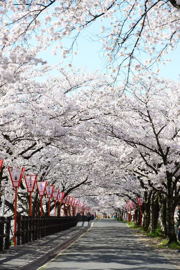 3月下旬から4月上旬にかけて、大中公園周辺の南北2.5キロメートルにわたり桜並木が続き、ライトアップされた夜桜を見物することができます。