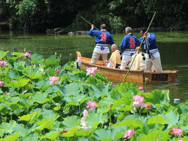蓮取り舟で古式に則り蓮を切り取り、その蓮は吉野山にある金峯山寺へ運ばれます。
