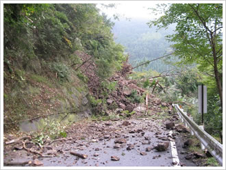 豪雨や地震などの異常な自然現象により、道路・河川等の公共施設が被災した場合、災害復旧を行なっています。