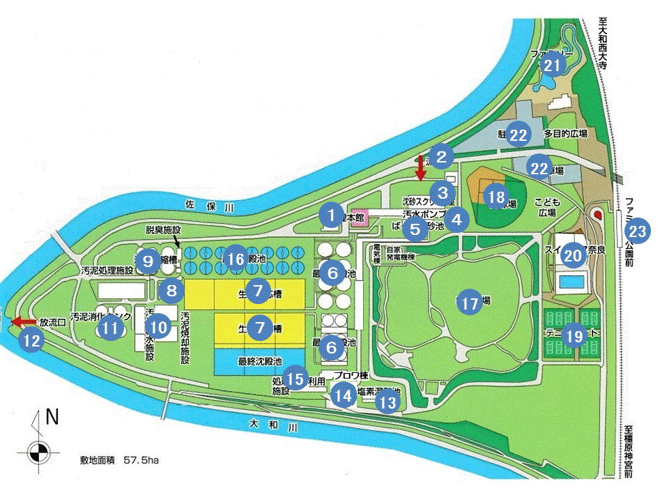 トップページ > くらし・環境 > まちづくり > 上下水道 > 下水道 > 流域下水道センター > 奈良県流域下水道の概要 > 浄化センター > 施設平面図