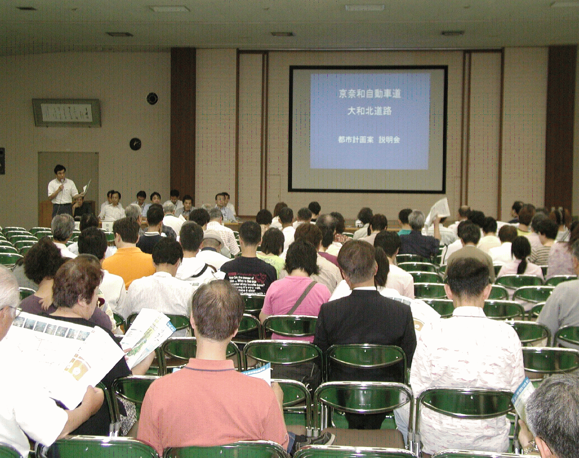 奈良県では、国や関係市の協力のもと、平成18年6月12日から7月2日にかけて、京奈和自動車道(大和北道路)の都市計画(案)に関する説明会を、大和北道路沿線の11地区で開催し、延べ777名の方にご出席頂きました。