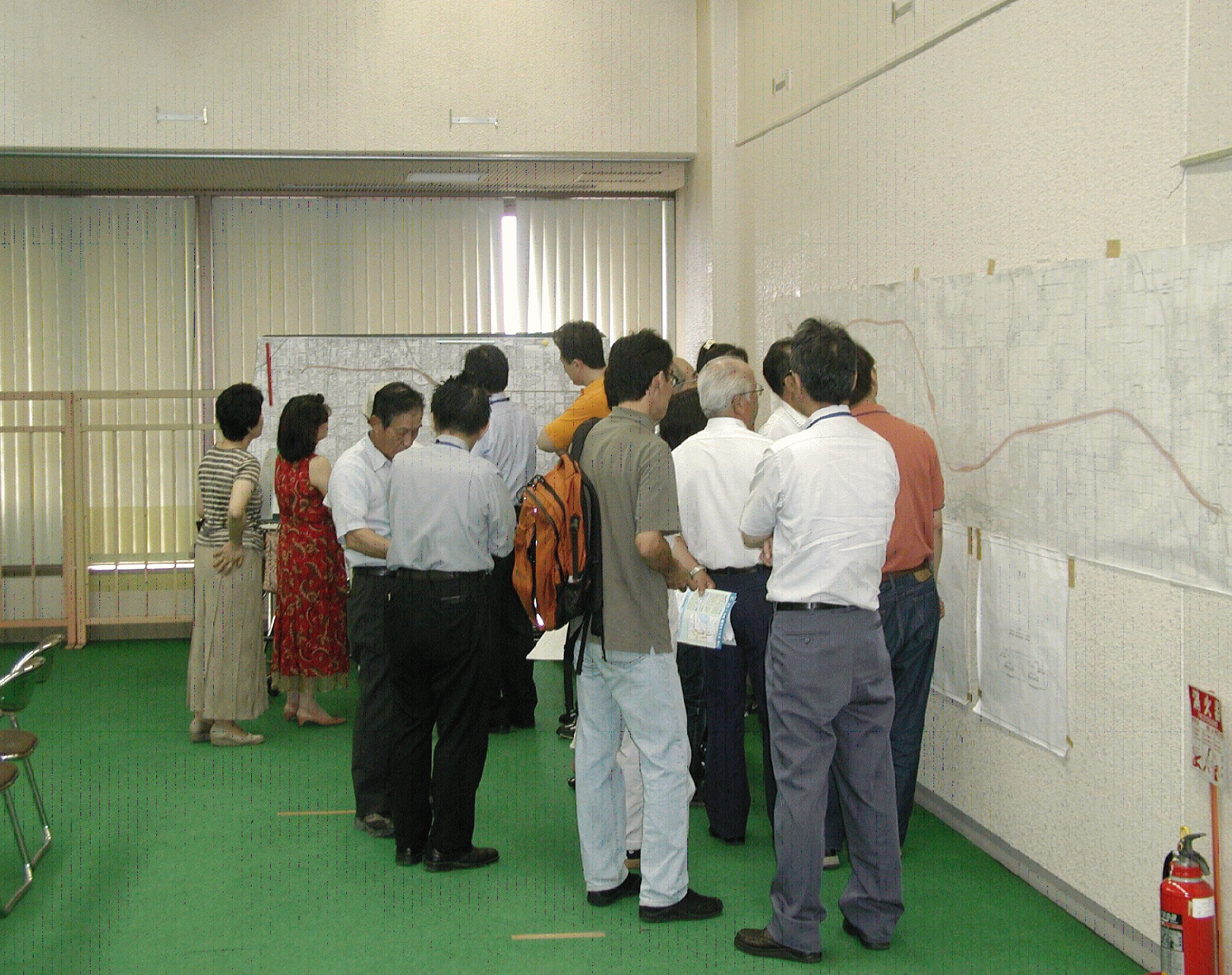 説明会では、都市計画(案)の概要について、ビデオやスライドなどを用いて説明し、その後、多くのご質問やご意見を頂きました。