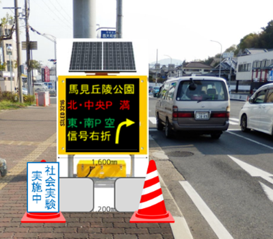 円滑な交通誘導実施のため、仮設のLED情報板を広域的に主要交差点に設置し、駐車場の満空情報の提供や経路案内を実施します。