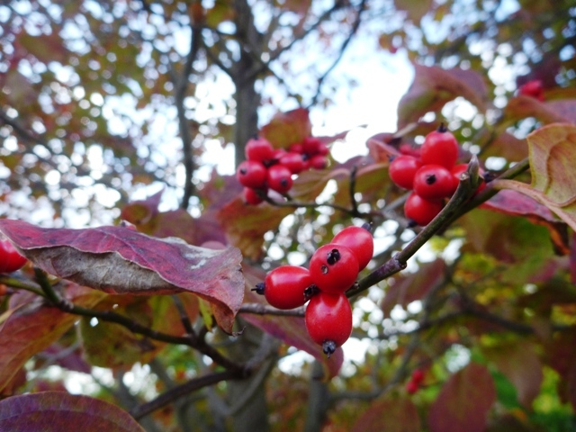 秋が深まり、園内では実をつけた木々がたくさん見られます。写真はハナミズキ。