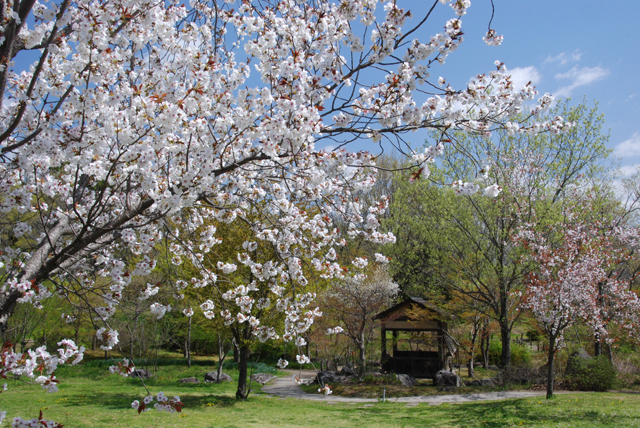 ソメイヨシノは終わりましたが、現在もきれいに咲いている桜の品種がいくつかあります。徒渉池の近くで咲いているのは、カスミザクラです。