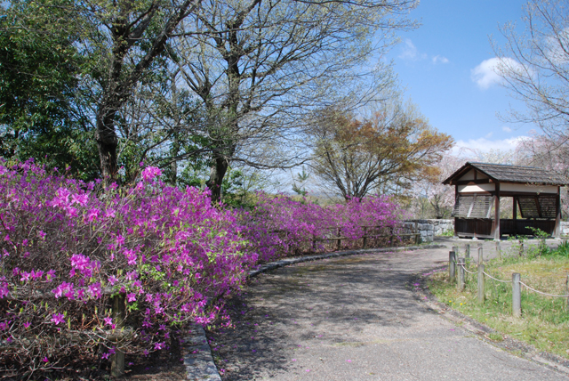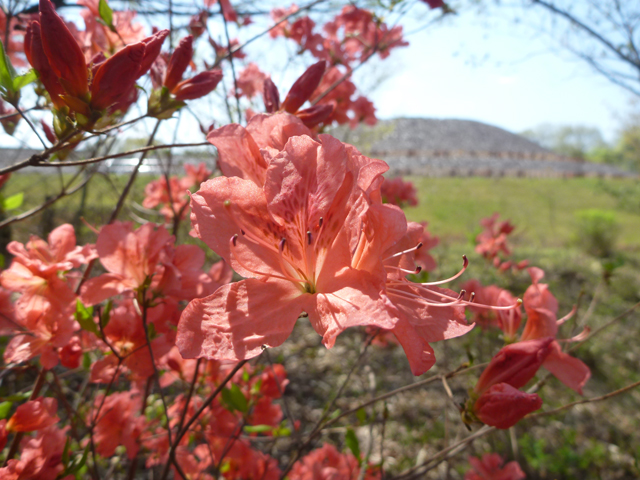 園内では、ツツジが咲き始めています。ナガレ山古墳の前で咲いているのは、ヤマツツジです。