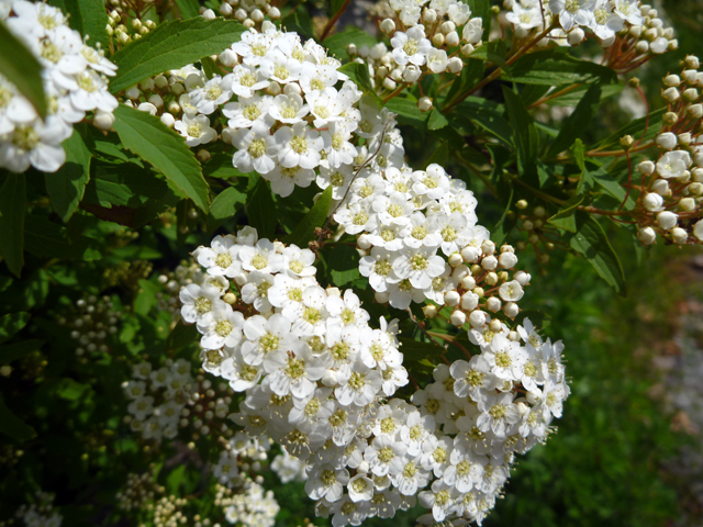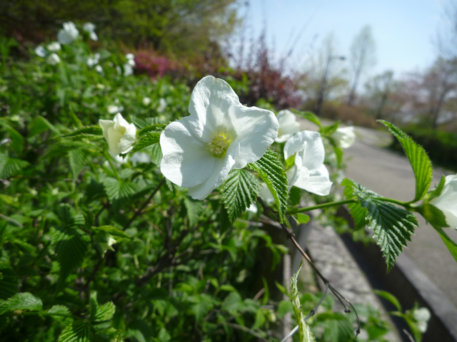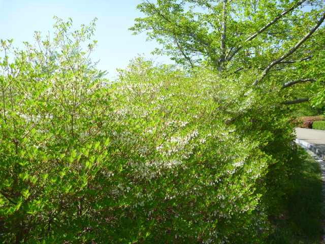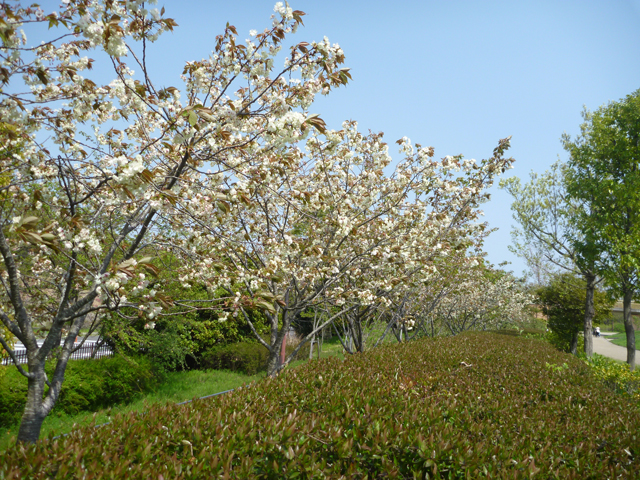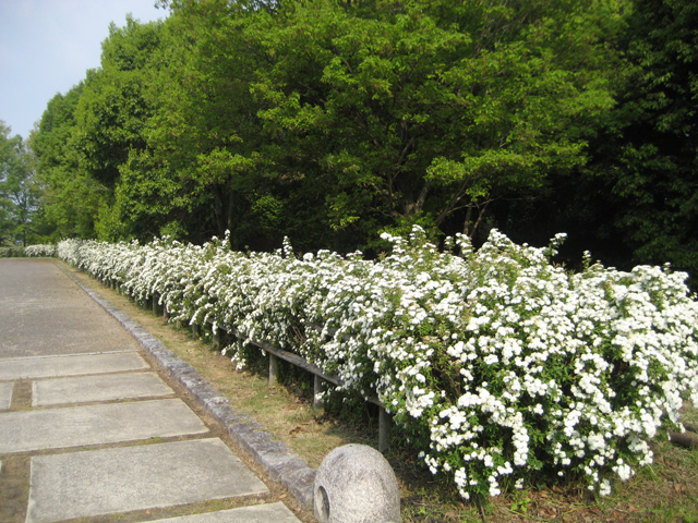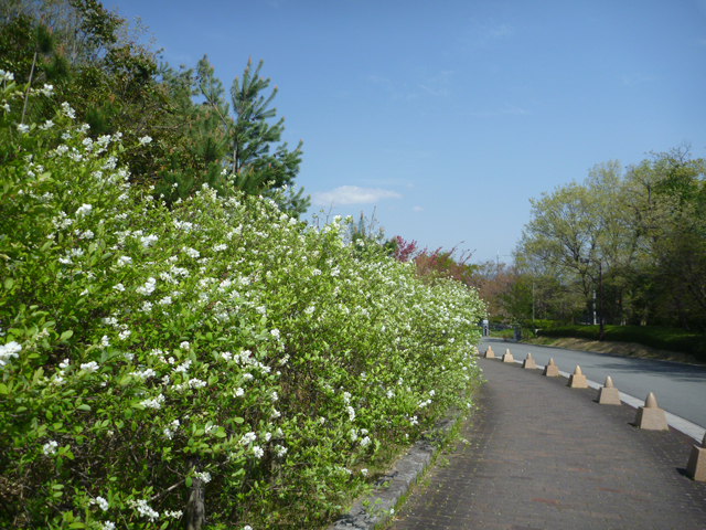 コデマリは中央駐車場、中央臨時駐車場、北エリアの砂場付近などで満開です。