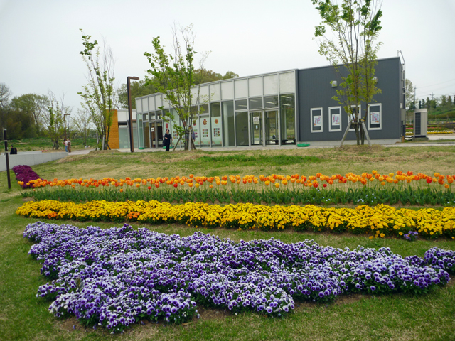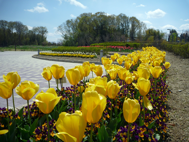 花の道(中央エリア)や馬見花苑(北エリア)で、チューリップが満開です。