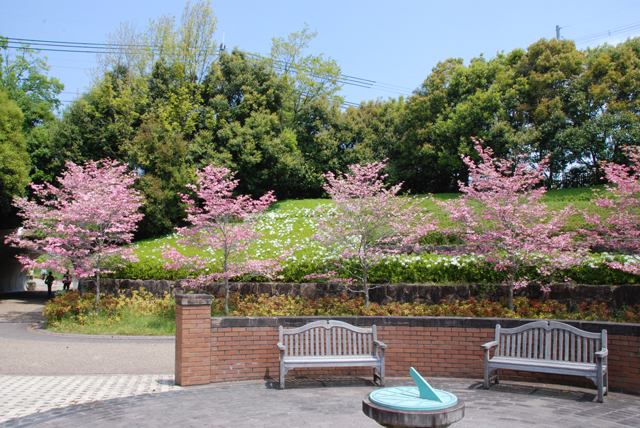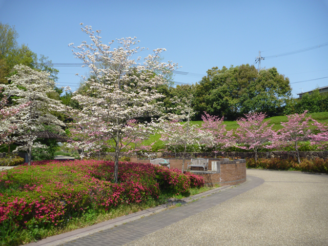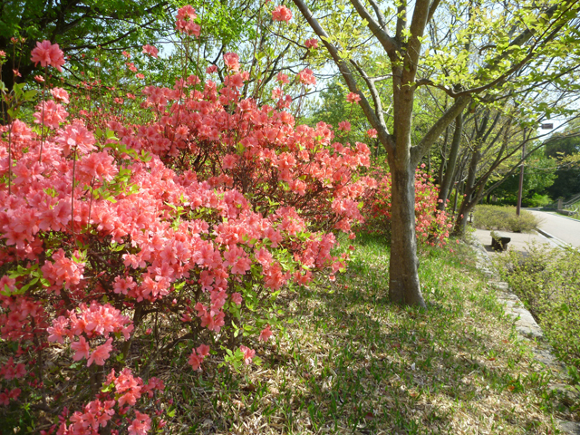 花の道のトンネル付近のハナミズキは、もう少しで満開になりそうです。キリシマツツジもだいぶ咲いてきました。