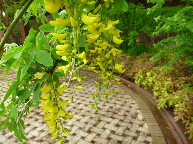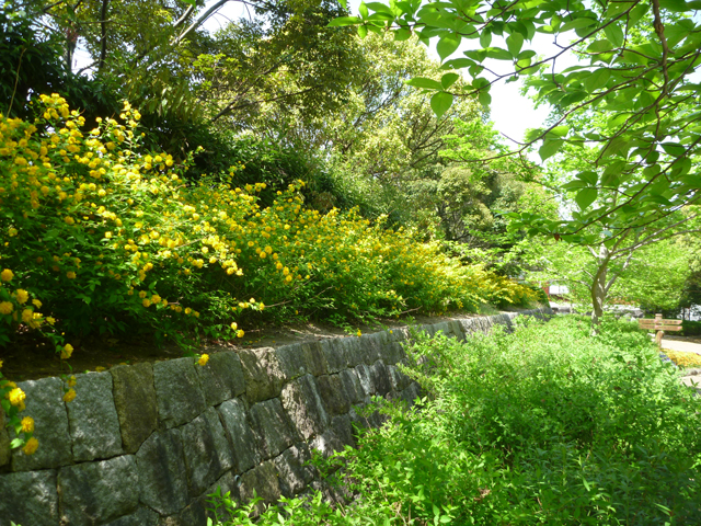 北エリア西口付近では、ヤエザクラ(鬱金)が淡黄色の花を咲かせています。