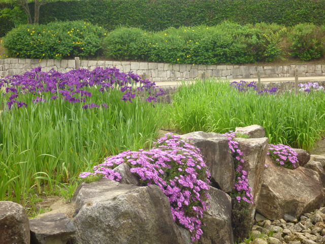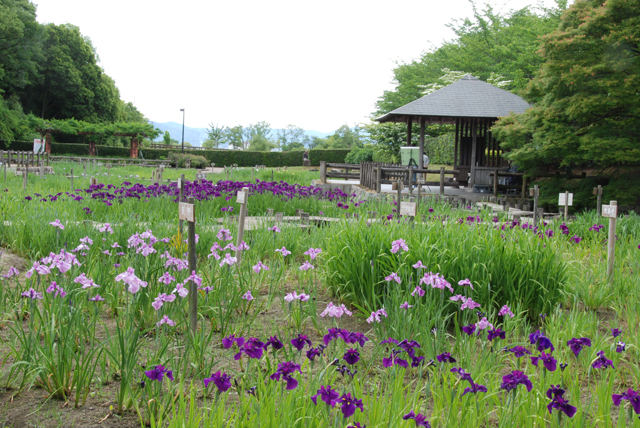 花菖蒲は、現在25品種ほどが咲き始めています。見ごろをむかえている品種もいくつかありますが、咲き揃うのは来週末の「馬見花菖蒲まつり」の頃になりそうです。