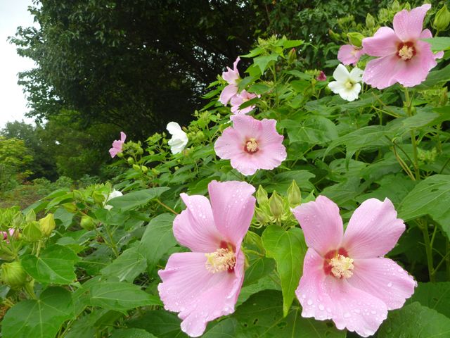 中央南口付近のフヨウです。色は、ピンクと白が咲いています。