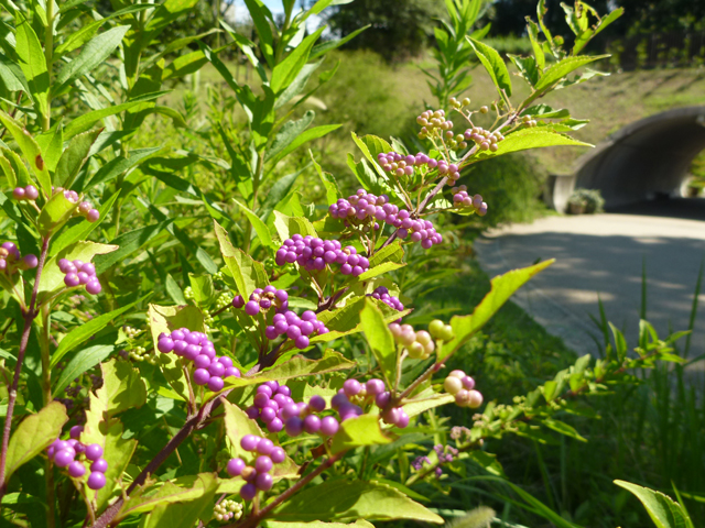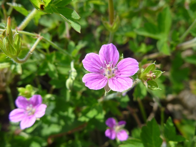 園内の各地で、ツユクサが見られます。写真は流れのある坂道の小川のほとりのものです。