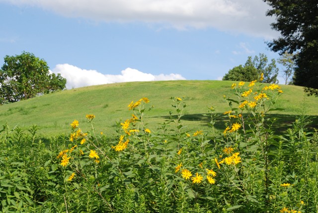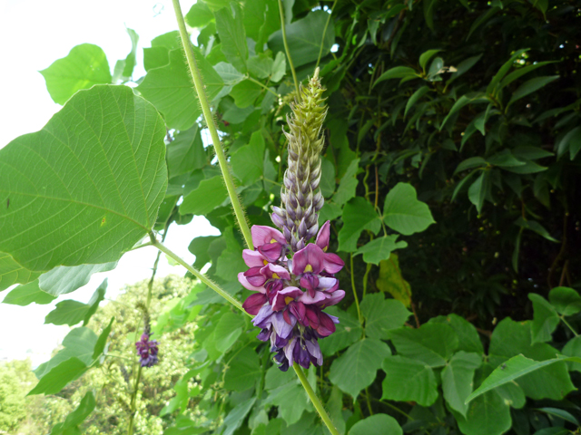 今回は公園内の雑草(野草)を紹介します。狐塚古墳の頂上付近(中央エリア側)で咲いているのは、クズの花です。