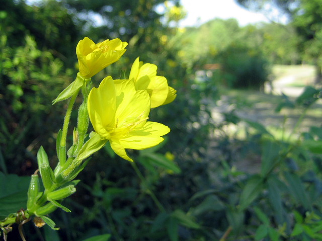 メマツヨイグサも園内の各地で咲いています。夜間に咲く一日花で、朝にはしぼんでしまいます。