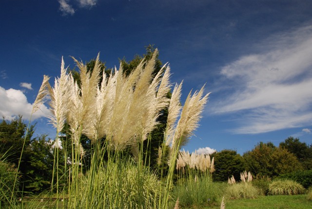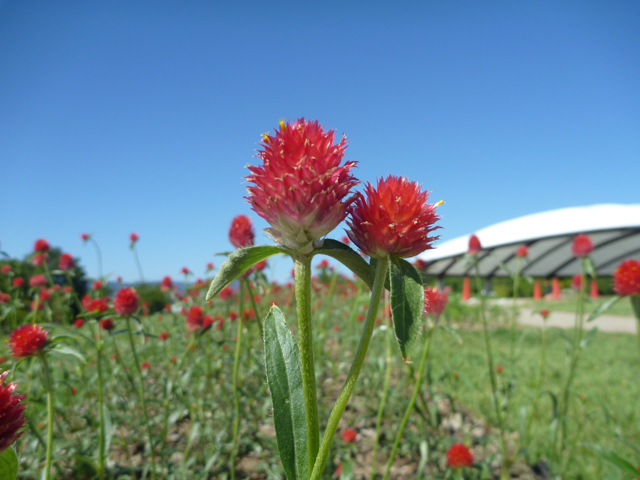 センニチコウの隣には、コスモスを植えています。丈の短いソナタという品種で、共にフェスタの頃に見ごろとなります。