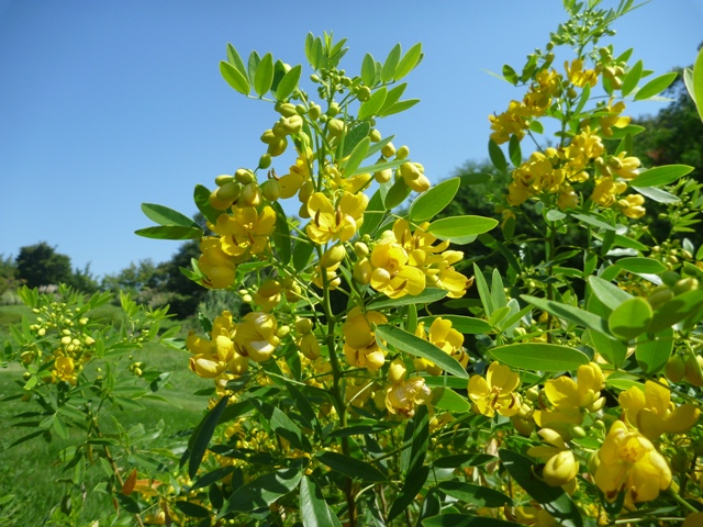 公園館からアジサイ園へ向かう途中の園路脇で、ブラキカム・アングスティフォリアが咲いています。