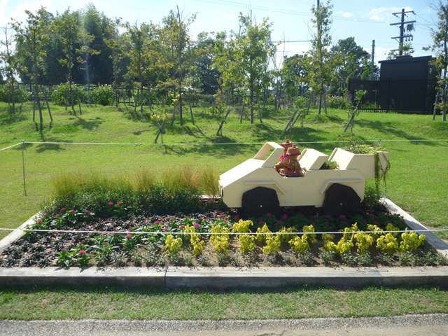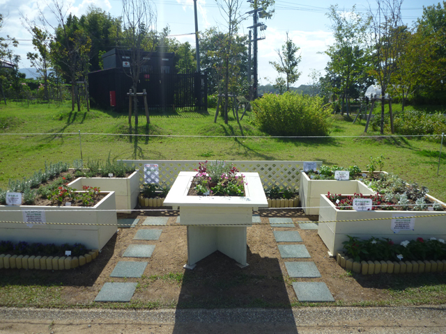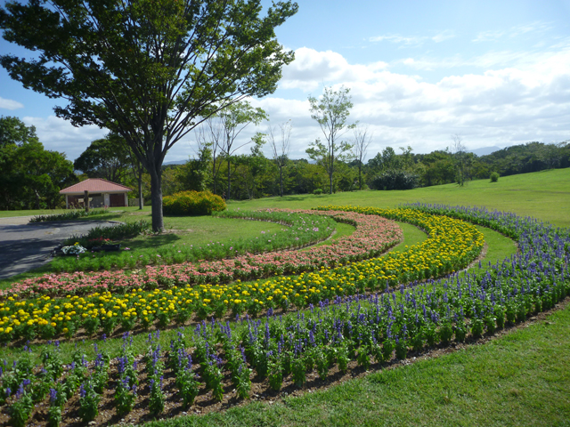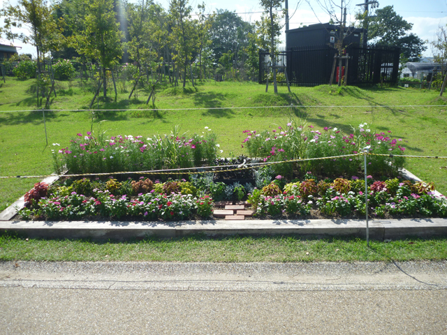 北エリアのダリア園の北側辺りで、花サポーター団体の部の皆さんが作ってくださった県民協働花壇が完成しました。