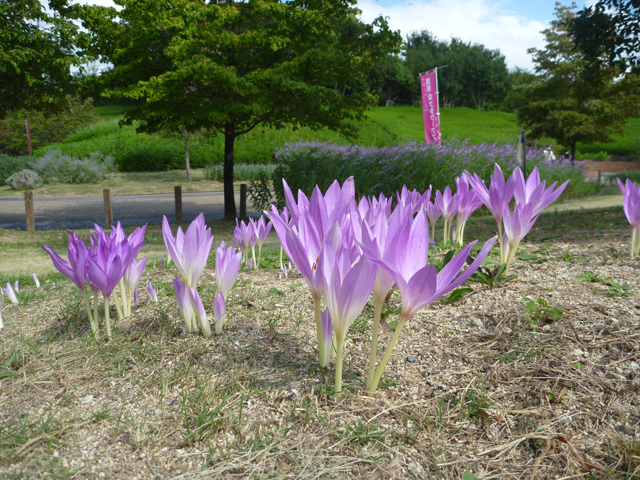 花の道でコルチカムが咲きはじめました。昨年より10日ほど早い開花です。