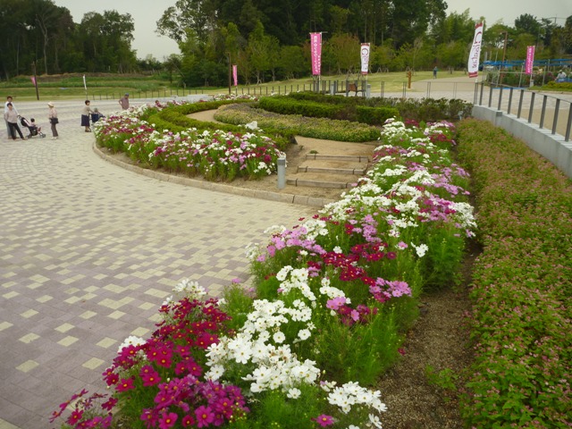 フラワーフェスタが昨日で終わりました。たくさんの皆様に来園いただき、ありがとうございました。ダリア園の後方、花見茶屋前も後片付けが盛んに行われています。